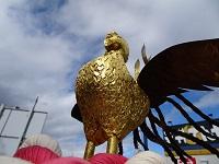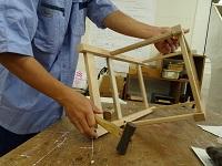 この御神輿は、本校の建築デザイン科の生徒たちが制作したもので、普段は管理棟正面玄関のホールに展示されています。