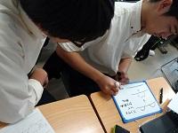 ホワイトボードに書いた自分たちの考えを写真に撮ってアップし、共有しました。