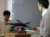 テーマは、「ペットボトルフリップにおける運動解析」で、2年生4名のチームです。