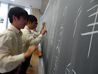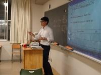 「ペットボトルフリップの運動解析」、「サイコロの目の出現率についての研究」のテーマで、2つのグループが登壇しました。