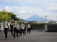 10月12日(木)朝、鹿児島県で開催される国体に出場する、本校ウエイトリフティング部の生徒たちが元気よく出発しました。