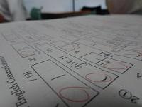 テストの答案が返却され、試験問題の振り返りをしていました。