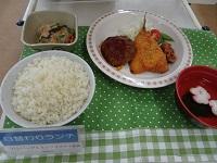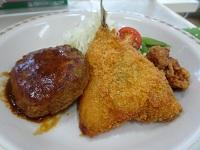 日替わりランチは「ハンバーグ&ミックスフライ定食」です。