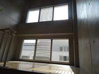 体育館屋根の向こう、谷津山の上に白く輝く月がみえていました。