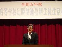 「出る杭を伸ばす教育~新・静岡のヒトづくり~」と題する内容で、生徒たちは大学での学びをイメージしながら熱心に先生のお話に耳を傾け、メモをとっていました。