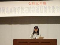 10月1日(日)、静岡県高等学校定時制通信制生徒生活体験発表大会が、静岡市葵生涯学習センター(アイセル21)で開催され、本校定時制3年生の柘植さんが登壇し、「変わると決めたから。」と題して発表を行いました。