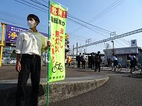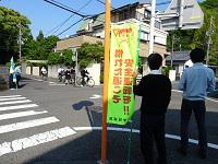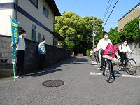 交通安全委員が街頭に立ち、交通安全を呼びかけました。