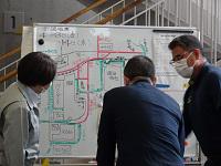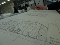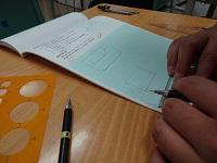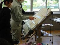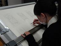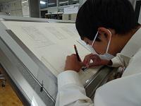 実習棟製図室では、連休中に進めた製図について、担当の先生から指導を受けていました。