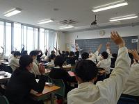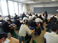 80歳を超えてからもなお、「自分自身の勉強のために、科学技術高校に来ている」と熱く語る会長に、生徒たちは身を乗り出して聞き、熱心にメモをとっていました。