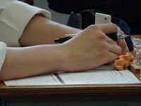今日は、今年度最初の「教養力テスト」です。教室では、万全を期すための最終確認をしている様子が見られました。