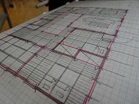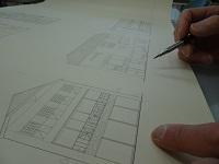 2級建築士の試験過去問をもとにして、店舗及び最上階に住居部分のある3階建の建物を考え、その図面を描いていました。
