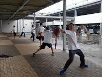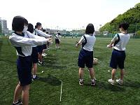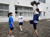 体育祭の1年生学年種目「バンブージャンプ」の練習をしていました。