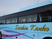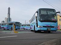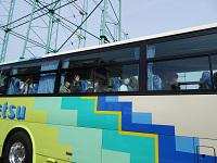 バス乗車前に消毒を徹底。コロナ対策、気を緩めずに。