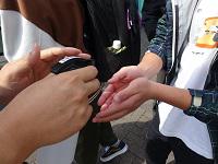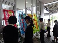 本校の生徒だけでなく、他校の生徒たちにも交通マナーを呼びかけました。