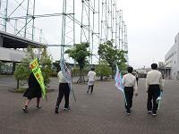 靖国神社東踏切、西門付近交差点、長沼駅前踏切、近隣コンビニ前、正門前横断歩道の各ポイントに向かいます。