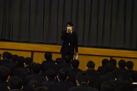「1学期はコロナ禍にあっても、6月に体育祭を開催し、皆さんの一挙手一投足に笑顔がはじけ、友人との親睦を深める様子も見てとれ、とてもうれしく思いました。しかし、その後も状況は芳しくなく、本来であれば表彰や壮行会を、全校生徒の前で開催し努力を讃えたかったという点で残念です。