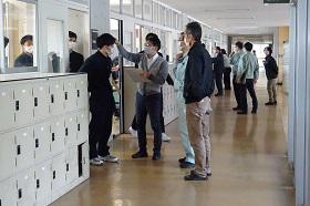 当日在校生の補助生徒は事前に募集を行い、有志で志願してくれた生徒約80名が誘導に携わってくれます。当日の集合時間や工業科実習棟での誘導ルートの確認、雨天時の対応、そして終了後のアンケート集計の説明を行いました。