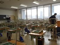 早朝、学年主任の先生が、生徒たちの登校前に環境を整えてくれています。