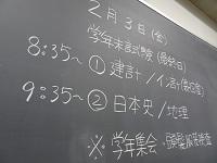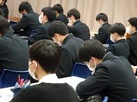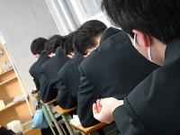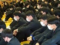 学年主任から、今後の過ごし方や卒業式までのこと、教務課から、学年末成績関係、生徒課から自動車学校やアルバイト等について、総務課から証明書の発行など、明日から家庭学習期間になるにあたっての話がありました。