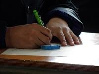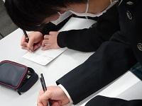 3年生の生徒たちが、早めに登校し、テスト勉強の最終確認をしていました。