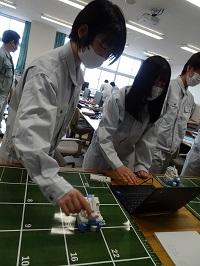 2月3日(金)、ロボット工学科の生徒たちが、ミニロボを使ったプログラミング実習の授業を受けました。