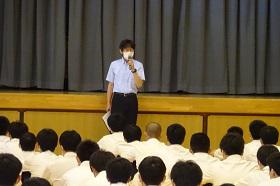 次に学年主任の先生から、①コロナ対策の徹底、また睡眠時間を確保する等健康管理をしっかり行うこと。②公共交通機関を利用するので時間を守ること。の2つの注意がありました。