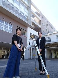 都市基盤工学科長の小林先生と柴田さん(右)。