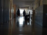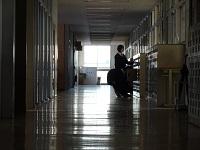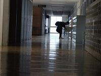 教室棟5階の廊下に鳥が一羽いました。