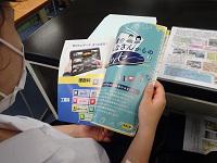 休憩時間に本校の学校案内パンフレットが配布され、科学技術高校の各学科の内容などを読んでくれていました。