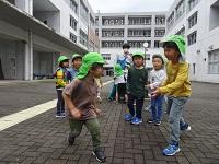 泥だんごづくりを終えて手を洗った園児たちは、生徒たちと鬼ごっこをはじめました。