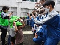 10月18日(火)、長沼こども園の年長組の園児たちが来校し、本校都市基盤工学科3年の生徒たちのサポートを受けながら、泥だんごづくりに挑戦しました。