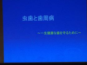 虫歯が進行していくプロセスや予防方法をはじめ、歯周病に関して、歯も大切だがその基礎となる歯茎の大切さ、歯周病の症状やこわさ等について講演していただきました。虫歯をそのままにしておくと認知症やメタボの原因にもなること。予防法としては、糖分を控え歯をみがき、口の中を健康に保つ自己管理と歯科医での定期検診を受けることが大切である等、歯の大切さと虫歯や歯周病予防の必要性を再認識することのできた講演でした。