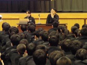 1月24日(金)LHRの時間、1年生を対象に「虫歯と歯周病について」をテーマに歯科保健講話が行われました。講師は、本校学校歯科医である川下先生と長倉歯科衛生士が務めてくださいました。