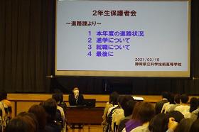 最後に進路課長より令和2年度の進路状況の説明、来年度の進路指導の流れ、注意事項等の説明が行われました。なお理数科は別室にて進学に関する説明会が行われました。