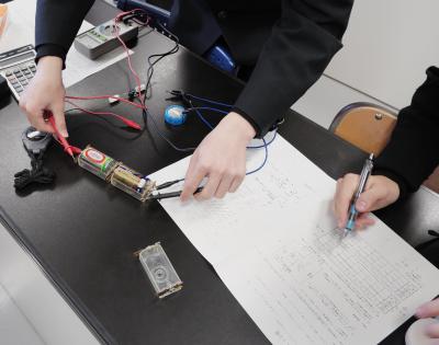 物理の授業でコンデンサの充電・放電に関する実験を行いました。時間経過とともに、コンデンサの端末間電圧を測定しグラフを描き、いくつかの考察を行いました。
