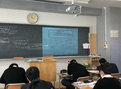 理数科3年の物理選択者を対象に、物理と数学の連携授業を行いました。