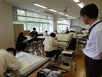 5月16日(木)午前、県教育委員会高校教育課長、同指導2班教育主幹が来校され、実習棟や教室棟を回って、授業の様子などを視察してくださいました。