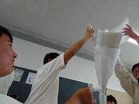 続いて、オリエンテーションを行いました。学校紹介動画を上映しながら説明すると、各学科の授業の様子や、部活動、学校行事などに興味関心を示していました。