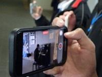 動画撮影する生徒のみなさん。