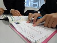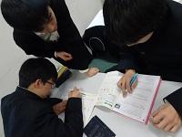 早めに登校してテスト対策の確認をする生徒たち。