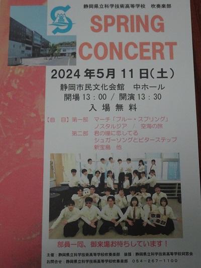 5月11日(土)、本日午後、本校吹奏楽部のスプリングコンサートが、静岡市民文化会館中ホールにおいて開催されます。