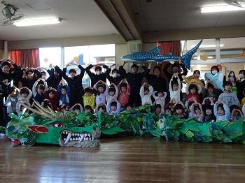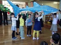 3月29日(金)、建築デザイン科の生徒たちが、今年度の文化祭で制作展示した「アクアトンネルと魚のオブジェ」の装飾を、本校が交流を行っている静岡市立長沼こども園の園児たちにプレゼントしました。