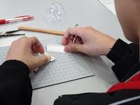 午後は、機械工学科1年生とともに「金属折り鶴づくり」に挑戦しました。