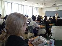 ポーランドからの留学生ジュリアさん、今日から都市基盤工学科1年生のクラスでの学校生活になります。