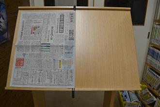 本校は新聞を4紙定期購読しており、静岡新聞をこの閲覧台に置いています。