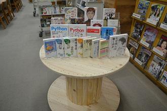 またコイル展示台は本校図書課が定期的に行っている「旬のコーナー組」の本を置いています。