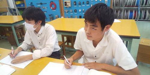 写真は、第一種電気工事士筆記試験 放課後学習会の風景です。