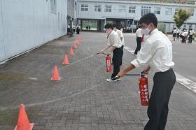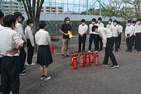 10月3日(月)、中間テスト終了後、本校生徒会防災委員(昨年度までは整備委員)対象に消火訓練を行いました。