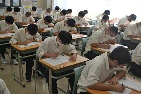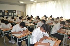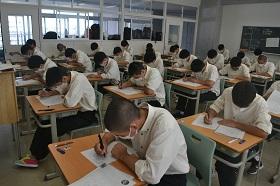 8月26日の始業式から約1か月間授業に取り組んだ成果を答案用紙に書き込んでいました。限られた時間でよく考え、自分の意見をまとめていたことが印象に残りました。