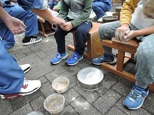10月18日(火)都市基盤工学科3年生7名は課題研究の授業の中で「長沼こども園」より年長組27名の園児を招き、土を使っての「だんごづくり」を行いました。